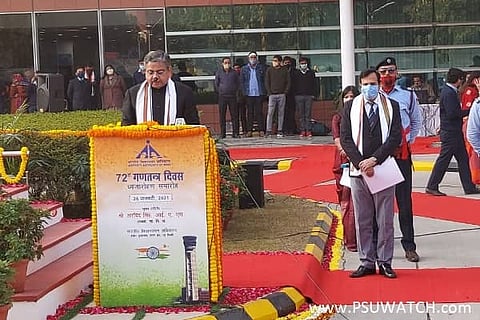New Delhi: Airports Authority of India commemorated the 72nd Republic Day with patriotic zeal and fervor while observing social distancing norms and wearing masks etc. due to the pandemic. On this august occasion, AAI's Chairman Arvind Singh (IAS) hoisted the tri-colour at New Air Traffic Services Complex of AA at IGI Airport, New Delhi, in the presence of esteemed Board Members and distinguished officials of AAI.