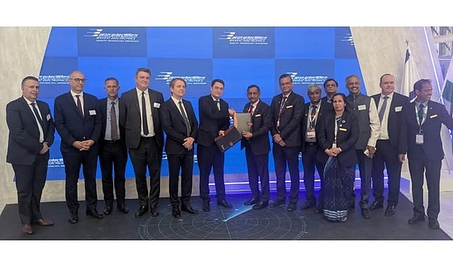 The Memorandum of Understanding (MoU) was signed by BEL's Director (Marketing) KV Suresh Kumar and Safran Electronics & Defense Executive Vice President Alexandre Ziegler in the presence of BEL's Chairman and Managing Director Manoj Jain, Safran Electronics & Defense CEO Franck Saudo and other senior executives of both companies.