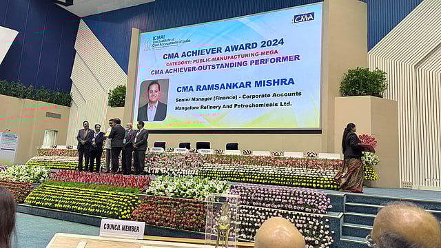 Mishra was selected for this prestigious recognition for his remarkable contributions to the Central/Corporate Accounts of MRPL, particularly for adopting industry best practices to enhance clarity and disclosures in financial statements. His strategic leadership in the planning, coordination, and execution of accounting and disclosure requirements during the acquisition of 100% stake and subsequent amalgamation of ONGC Mangalore Petrochemicals Limited (OMPL) was especially appreciated by the Institute.