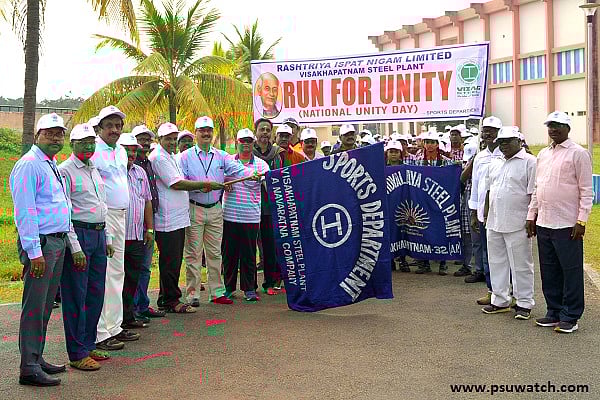 Visakhapatnam: RINL-VSP organised a 'Run for Unity' in connection with 'Rashtriya Ekta Diwas' (National Unity Day) to commemorate the 144th birth anniversary of Sardar Vallabhbhai Patel on Thursday. A large number of VSP employees and children from schools of Ukkunagaram participated in the 'Run for Unity'. RINL's Director (Commercial) DK Mohanthy flagged off the Run for Unity at the Col CK Nayudu Ukku Stadium in the township.