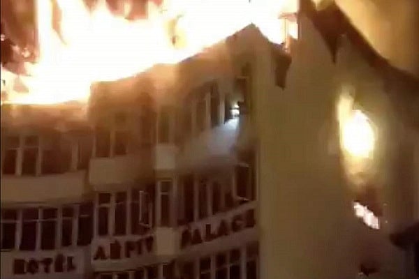 According to a source, the fire could have started because of a short circuit and it spread because of the wooden panelling in the hotel corridor and rooms.