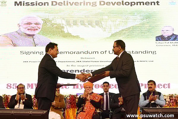 The MoU was signed in the presence of Prime Minister Narendra Modi, Joint Secretary (Hydro) Aniruddha Kumar, NHPC CMD Balraj Joshi, among others. NHPC is a Category-A Miniratna Company under the Ministry of Power and has three projects (3800 MW) under construction, including a 1000 MW Pakal Dul project in J&K in a Joint Venture with JKSPDC.