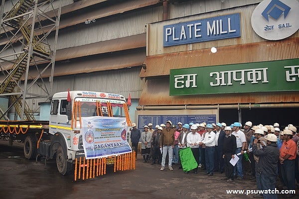 Bhilai: The latest lot of Misra Dhatu Nigam Limited (MIDHANI) slabs rolled in Bhilai Steel Plant's Plate Mill for use in the satellite launch vehicle (SLV) for India's first human space mission programme, Gaganyaan, was flagged off by SAIL's Director (Projects) & CEO of Bhilai Plant Anirban Dasgupta on February 6, in the presence of senior officers of the plant.