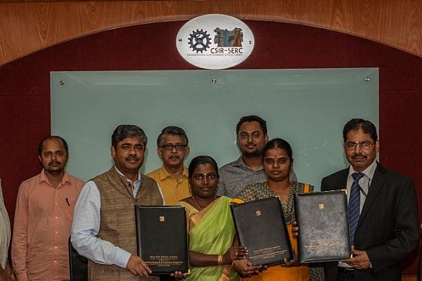 Geopolymer concretes (GPCs) are a new class of building materials that have emerged as an alternative to the existing concretes. It possesses the potential to revolutionise the building construction industry. The Geopolymer concrete block technology is a low-cost and eco-friendly technology which can be easily commercialised by SMEs. The technology offers high early strength, Portland cement-free binder, no water required for curing, less energy requirement, low carbon footprint with good mechanical and durability properties. The Technology Transfer Licensing Agreement was signed by NRDC Chairman & Managing Director Dr H Purushotham, CSIR-SERC Director Prof Santosh Kapuria and Srimathi from KPS Bricks Industries.