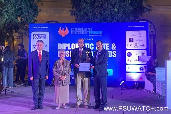 Dean of the Diplomatic Corps HE Alem Tsehaye Woldemariam presented the award to the organization, represented by RITES' Director (Projects) Arun Kumar Singh and Joint General Manager Alok Kumar during the glittering ceremony in New Delhi on December 14.