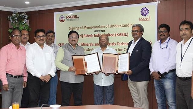 New Delghi: Khanij Bidesh India Limited (KABIL) has signed a memorandum of understanding (MoU) with the Council of Scientific and Industrial Research - Institute of Minerals and Materials Technology (CSIR-IMMT) for technical and knowledge cooperation for critical minerals. The MoU has been signed by Sadashiv Samantaray, Director (Commercial), NALCO & CEO, KABIL and Dr Ramanuj Narayan, Director, CSIR-IMMT, in the presence of Sridhar Patra, CMD, NALCO & Chairman, KABIL, at NALCO Corporate Office in Bhubaneswar on Wednesday.