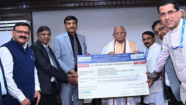 A cheque was presented to the Uion Minister of Power Manohar Lal Khattar by Power Grid's Chairman & Managing Director (CMD) RK Tyagi in the presence of Directors of Power Grid.