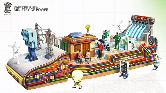 A key attraction of the tableau is a robotic Smart Meter model, displayed alongside wind turbine generators, reflecting the integration of digital technologies, automation, and smart solutions for efficient power management. The central section portrays the concept of “Smart Power, Smarter Home” through rooftop solar installations, highlighting the government’s vision of empowering citizens as ‘prosumers’ both producers and consumers of electricity.