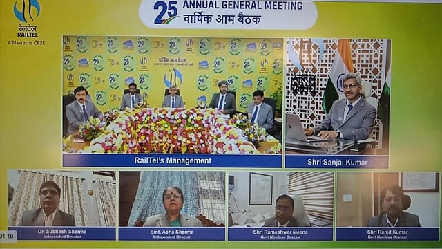 New Delhi: RailTel Corporation of India Ltd (RailTel) has reported a net profit of Rs 300 crore for the financial year 2024-25. The results were presented during the company’s 25th Annual General Meeting (AGM), held on Wednesday, through video conferencing under the chairmanship of RailTel's Chairman and Managing Director (CMD) Sanjai Kumar.