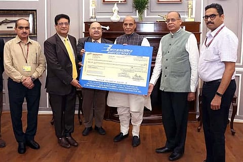 New Delhi: Defence PSU Bharat Electronics Limited (BEL) has paid a final dividend 150% Final Dividend cheque of Rs 1,86,89,60,967/- (Rupees One Hundred Eighty-six Crores Eighty-Nine Lacs Sixty Thousand Nine Hundred Sixty-seven only) to the government. Dinesh Kumar Batra, Chairman & Managing Director (Additional Charge), along with Manoj Kumar, Executive Director (National Marketing), BEL, presented the cheque to the Defence Minister, Rajnath Singh, in New Delhi on September 28, 2022.