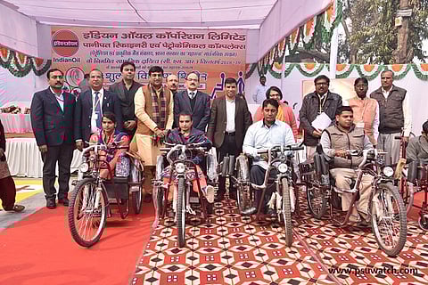 Panipat: Indian Oil's Panipat Refinery and Petrochemical Complex (PRPC) has distributed various types of equipment to Divyangjans in Bal Bhavan, Panipat on December 22. The event was carried out as part of CSR activity under the Indian Oil's core value 'CARE', to facilitate and assist them in the enhancement of livelihood earning and a better standard of life. MLA (Panipat) Mahipal Dhanda, Deputy Commissioner of Panipat, Sumedha Kataria, VK Raizada, Executive Director of PRPC were also present at the event. As part of MOU, the equipment have been manufactured by ALIMCO (Artificial Limbs Manufacturing Corporation of India).