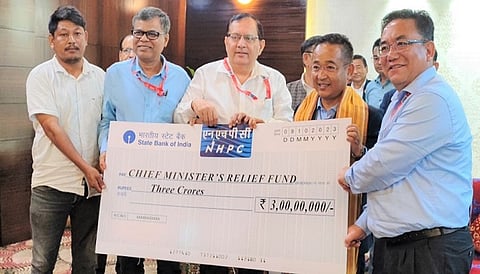 New Delhi: NHPC Limited has contributed Rs 3 crore to the Chief Minister’s Relief Fund of Sikkim to support the relief efforts of the Govt. of Sikkim for the victims of unexpected natural calamity caused due to the lake outburst in the Lhonak on the night of 3, October. The payment intimation advice was presented to Prem Singh Tamang, Chief Minister of Sikkim by LK Tripathi, Executive Director (Region-Siliguri), CR Das, HoP Teesta-V Power Station, Lhendhup Lepcha, Teesta-IV HE Project alongwith Senior Officials of Teesta-VI HE Project at Gangtok, Sikkim on October 10.