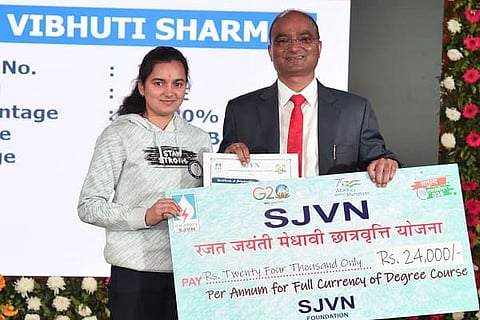 New Delhi: SJVN Limited's Chairman & Managing Director (CMD) Nand Lal Sharma on Monday awarded SJVN Silver Jubilee Merit Scholarship to 75 meritorious students of Himachal Pradesh. Chief Guest of the occasion, Lal Sharma awarded scholarship cheques of Rs 24,000 per annum each to the selected students of class 12th for academic session 2021-22 in an award ceremony held at SJVN Corporate Headquarters, Shimla.