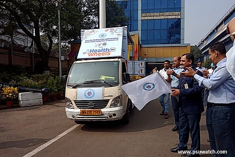 GRSE's Director (Shipbuilding) Sanjeev Nayyar IN (Retd) flagged off the "Health on Wheels" initiative from the Shipyard's main unit. Under this initiative, a mobile unit travelled across four areas of Kolkata. The unit was manned by two doctors, a compounder and an attendant encouraging people for undergoing health check-up. The mobile unit provided free health checkups which included height, body weight (BMI), blood pressure (BP) and sugar tests.