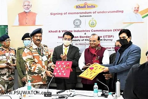 New Delhi: The big Swadeshi drive in paramilitary forces envisaged by Union Home Minister Amit Shah has gained fresh momentum with a new agreement for the supply of Khadi cotton durries to the forces. In another first, Khadi and Village Industries Commission (KVIC) has signed a memorandum of understanding (MoU) with Indo-Tibetan Border Police (ITBP) for the supply of 1.72 lakh cotton durries every year. The agreement has been signed by KVIC's Deputy CEO and ITBP's DIG in presence of KVIC Chairman Vinai Kumar Saxena and Additional Secretary (Home) Vivek Bhardwaj and other officials of CAPFs.