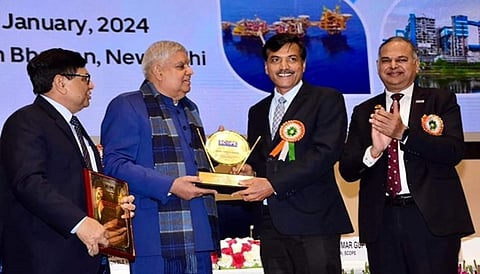 New Delhi: Power Grid Corporation of India Limited (PGCIL) has been bestowed SCOPE Meritorious Award for CSR & Responsiveness. It was presented by Vice President of India Jagdeep Dhankhar and received by Power Grid CMD RK Tyagi in a ceremony held at Vigyan Bhavan.
