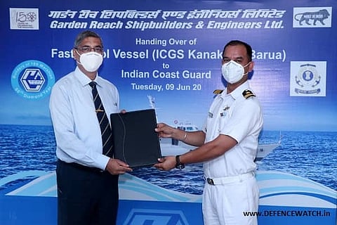 Kolkata: Defence PSU and India's premier warship builder Garden Reach Shipbuilders and Engineers (GRSE) Ltd has delivered ICGS Kanaklata Barua, the fifth ship (Yard 2117) in the series of Fast Patrol Vessels (FPV) for the Indian Coast Guard. This is the 105th vessel delivered by the Miniratna Category-1 Defence PSU shipyard. The handover was done at GRSE's Fitting Out Unit in Kolkata on Tuesday. The Protocol of Delivery and Acceptance was signed between Rear Admiral VK Saxena, IN (Retd.), Chairman & Managing Director, GRSE and Commanding Officer of the vessel, Comdt (JG) Subhash Kapoor, in the presence of DIG RH Nandodkar TM, SS Dogra, Director (Finance), Cmde S Nayyar, (Director Shipbuilding), Cmde PR Hari, Director (Personnel) and other Senior Officials of GRSE and Indian Coast Guard. After the protocol CMD, GRSE announced the news on twitter. "Yard 2117, Last Ship of 05 Ships under FPV project designed & built in-house by #GRSE #Delivery of the ship is a testimony to GRSE unrelenting efforts towards Aatmanirbharta initiatives of GOI in Shipbuilding," he wrote.