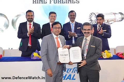 Bengaluru: (Aero India 2021 news) Hindustan Aeronautics Limited (HAL) on Thursday has signed a contract with GE Aviation for the development and supply of ring forgings for GE Aviation military and commercial engine programs. The five-year contract valued over Rs 100 crores (USD 15 M), involves supplying both steel and nickel alloy forgings for shrouds, cases, rings and seals. GE Aviation's Senior Director (Global Sourcing Strategy) Chandrashekhar Yavarna handed over the contract document to HAL's Executive Director (Foundry Forge Division) MS Venkatesh.