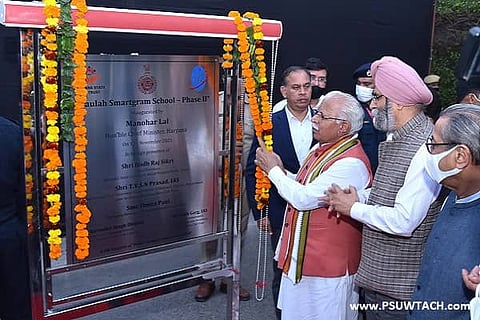 New Delhi: Chief Minister of Haryana Manohar Lal inaugurated construction of Phase-II of Daulah Smartgram Secondary School in Gurugram, Haryana in the presence of Power Finance Corporation's (PFC) Chairman & Managing Director (CMD) Ravinder Singh Dhillon. PFC, now a Maharatna PSU, has signed an MoA with Haryana State Corporate Social Responsibility Trust for the construction of phase-II of Daulah Smartgram Secondary School in Gurugram as part of its CSR initiative. As per the agreement PFC will provide financial assistance for construction of onsite Sanitation Sewerage Management System, Solar Rooftop, Fire Fighting System etc. The school has been built with new and sustainable technology.
