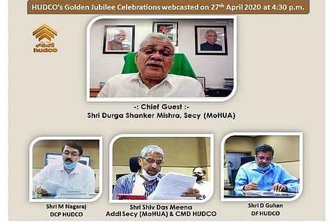 New Delhi: On the occasion of HUDCO's Golden Jubilee, more than 1,000 officials and stakeholders from across the country joined a live webcast event to mark 50 years of distinguished service to the nation. In the wake of the corona pandemic, the use of information technology to enable the virtual celebration of the foundation day was a historic first.