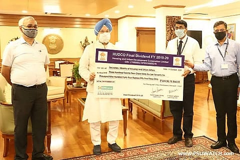 Union Minister of State (Independent Charge) for MoHUA Hardeep Singh Puri has been presented the final dividend cheque of Rs 428.68 crore for the year 2019-20, by HUDCO's Director (Corporate Planning) M Nagaraj. While MoHUA's Secretary DS Mishra, HUDCO's Director (Finance) D Guhan and other senior officials were also present on the occasion.