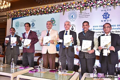 IIME's President Dr Narendra K Nanda, MPT-2019's Chairman & NGRI's (National Geophysical Research Institute) Director Dr VM Tiwari and MPT-2019's Convener & NMDC Limited's Jt GM (R&D) SK Chaurasiya were present during the inaugural function of 18th Conference on Mineral Processing Technology.