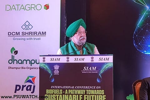 New Delhi: India is ready from the supply side to launch E20 and the E20 fuel will be available from April 2023, said Union Minister of Petroleum & Natural Gas Hardeep Singh Puri on Wednesday. "We have not only achieved 10 percent ethanol blending five months before the target, but we will achieve 20 percent blending target five years before the target of 2030," Puri said while addressing the plenary session on "A giant leap for biofuels – Ethanol blending & SATAT Scheme" at SIAM's International Conference on Biofuels.