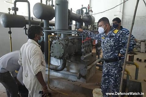 The Oxygen Plant at Shri Kalahasthi near Tirupati is a big plant based on VPSA technology and is capable of generating 16,000 litres per minute at 5 bar (direct feed to lines rather than charging). The naval team undertook repairs of the plant and achieved the requisite output proved for medical-grade Oxygen above 93 percent, 0 percent Carbon Monoxide and 0.02 percent Carbon Dioxide by carrying out necessary adjustment of column and moisture absorption of the plant.