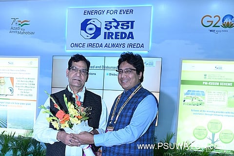 New Delhi: Minister of Energy & Additional Sources of Energy, Urban Development, Urban Employment and Poverty Alleviation, Govt. of Uttar Pradesh Arvind Kumar Sharma on Saturday visited IREDA pavilion at "Uttar Pradesh Global Investors Summit 2023" in Lucknow. IREDA's Chairman & Managing Director (CMD) Pradip Kumar Das welcomed him and briefed him about the phenomenal achievements of the organisation in the last three years.