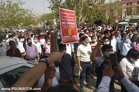 New Delhi: Banking operations across the country were impacted on Monday as nine bank unions took part in a nationwide strike against the government's public sector bank (PSB) privatisation plan and 'retrograde banking reforms.' The strike call was issued by the United Forum of Bank Unions (UFBU), an umbrella body of these nine bank unions. The UFBU said that as many as 10 lakh PSU bank employees are expected to take part in the two-day strike that began on Monday.