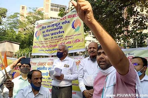 New Delhi: The Bharatiya Mazdoor Sangh (BMS), which is an affiliate of the Rashtriya Swayamsevak Sangh, held pan-India demonstrations on Thursday to demand an immediate stop to the Centre's ambitious PSU disinvestment, privatisation and asset monetisation policy, terming it as being against national interest. The organisation lambasted the Bharatiya Janata Party (BJP) government for resorting to a policy of selling PSUs to bridge its fiscal deficit and raise revenues. Accusing the government of double-talk, the BMS said that the idea of Atmanirbharta, or self-reliance, cannot go hand-in-hand with a policy that seeks to privatise public sector companies.