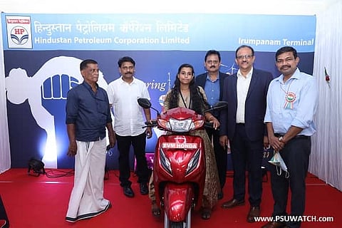HPCL's Executive Director (SOD) Subodh Batra and Chief General Manager (Retail South Zone) Sandeep Maheshwari attended the function virtually. HPCL General Manager (O&D, SZ) R Narayana Rao and Irumpanam Terminal In-Charge Navin Kumar handed over a Honda Activa to Delisha on behalf of HPCL as a token of appreciation.