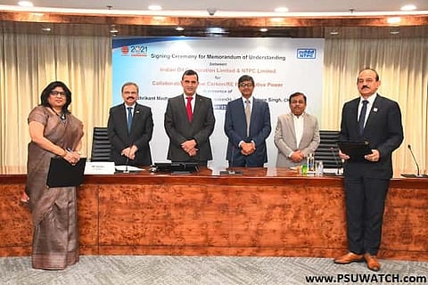 The MoU was signed on Friday in New Delhi in the presence of NTPC CMD Gurdeep Singh, Indian Oil's Chairman Shrikant Madhav Vaidya and NTPC Limited's Director (Commercial) CK Mondol, Indian Oil's Director (R&D and P&BD) SSV Ramkumar. The signatories of the MoU were NTPC Limited's Chief General Manager (BD) Sangeeta Kaushik and Indian Oil's Executive Director (M&I) VK Raizada.