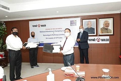 New Delhi: Numaligarh Refinery Limited (NRL) has signed a memorandum of understanding with National Aluminium Corporation (NALCO) for long term supply of Calcined Petroleum Coke to the aluminium giant on September 24. Under this MoU NRL will supply Calcined Petroleum Coke to NALCO for a period of five years with an annual sale of 40,000 MT. NRL produces around 70~75 TMT of anode grade quality Calcined Petroleum Coke every year with sulphur content less than 3.0 per cent. The MoU has been signed between the two organisations in presence of NALCO's Chairman-cum-Managing Director (CMD) Patra and NRL's Managing Director SK Barua at Bhubaneswar. This information was given the aluminium PSU in a tweet on September 24.