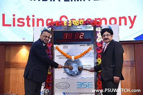 New Delhi/Mumbai: RailTel Corporation of India Limited (RailTel), one of the largest neutral telecom infrastructure providers in the country, listed on the exchanges at an 11.27 percent premium over its issue price. The shares of the company on trading closure settled at Rs 121.40 per share on BSE and Rs 120.60 per share on NSE. The shares touched a high of Rs 125.50 with a premium of 33.51 percent on BSE and Rs 127.85 with a premium of 36.01 percent on NSE.