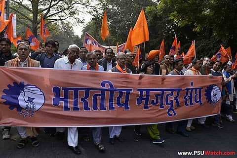New Delhi: The Bharatiya Mazdoor Sangh (BMS), an affiliate of Rashtriya Swayamsevak Sangh (RSS), is set to hold nationwide protests on October 28 to demand a stop to the Centre's policies of "disinvestment, privatisation, monetisation, corporatisation and strategic sale of public sector." Speaking to PSU Watch, BMS' All India Secretary of its Public Sector Coordination Committee, Girish Arya, said that public sector unions affiliated to the BMS will send a memorandum to Prime Minister Narendra Modi in support of its demands.