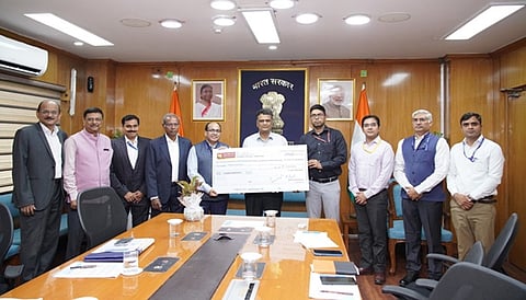 The dividend cheque was formally presented to the Secretary of Higher Education at the Ministry of Education K Sanjay Murthy by the Chairman and Managing Director of EdCIL Manoj Kumar in a ceremony held on November 5. Also in attendance were Govind Jaiswal, Joint Secretary (TEL) of the Ministry of Education, along with senior officials from both the Ministry and EdCIL.