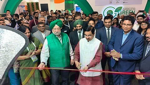 New Delhi: Union Minister for New and Renewable Energy Pralhad Joshi along with Minister of Petroleum & Natural Gas Hardeep Singh Puri inaugurated the IREDA Pavilion on Wednesday at the "2nd International Conference on Green Hydrogen" at Bharat Mandapam, New Delhi.