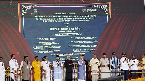 New Delhi/Kurnool: Prime Minister Narendra Modi laid the foundation stone for Power Grid Corporation of India Limited’s (PGCIL) transmission system strengthening project at Kurnool-III Pooling Station in Andhra Pradesh. The project aims to facilitate the integration of additional renewable energy (RE) generation projects, supporting India’s transition toward a greener power grid.