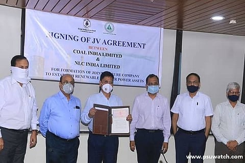 New Delhi: The coal PSUs, Coal India Limited (CIL) and NLC India Limited have signed a memorandum of understanding (MoU) to jointly establish a joint venture company (JVC) to develop 5,000 MW of solar and thermal power assets across the country. The MoU has been signed by Coal India's Director (Technical) Binay Dayal and NLC India's Director (P&P) NNM Rao on Friday. The MoU signing ceremony was held via video-conferencing and the JV was signed at their respective offices. On the occasion, Coal India Limited's Chairman Pramod Agrawal, Director (P&IR) RP Srivastava, Director (Finance) Sanjiv Soni, Director (Marketing) SN Tiwari and senior officials of NLC India Limited were also present.