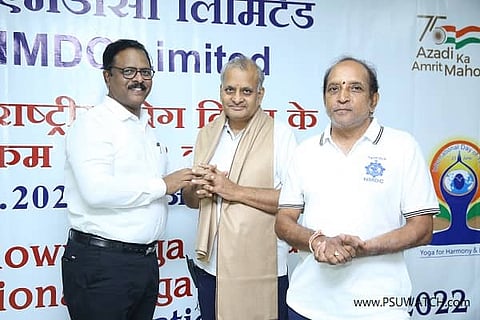 New Delhi: India's largest producer of iron ore NMDC Limited hosted Yoga Practice and Demonstration today at its Head Office and projects to celebrate the countdown to International Day of Yoga on June 21, 2022. NMDC's ED (Personnel) Praveen Kumar inaugurated the Yoga Session in Hyderabad and encouraged the employees and their family members to actively participate.