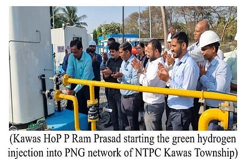 The first molecule of green hydrogen from the project was set in motion by Shri P Ram Prasad, head of project, Kawas in presence of other senior executives of NTPC Kawas and GGL. After the start of blending operation, NTPC Kawas held awareness workshops for township residents with help of GGL officials.