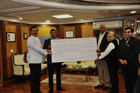 Ramesh Babu V, Chairman, NTECL & Director (Operations), NTPC had presented the cheque to Gurdeep Singh, Chairman & Managing Director, NTPC.
