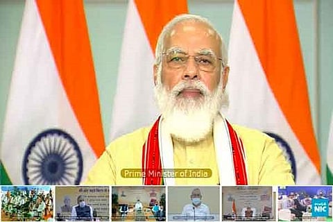 New Delhi: Prime Minister Narendra Modi dedicated to the nation two new LPG cooking gas bottling plants, at Champaran and Banka in Bihar, along with the Durgapur-Banka section of the Paradip-Haldia-Durgapur LPG pipeline through a video link on September 13. Chief Minister of Bihar Nitish Kumar, Union Minister for Petroleum & Natural Gas and Steel Dharmendra Pradhan and Deputy Chief Minister of Bihar Sushil Modi was also present during the inauguration.