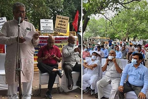 New Delhi: Power sector employees converged at Delhi's Jantar Mantar on Tuesday to begin a four-day-long Satyagraha to oppose the Electricity (Amendment) Bill, 2021. "On the call of National Coordination Committee of Electricity Employees & Engineers (NCCOEEE) hundreds of power employees and engineers started four-day Satyagraha at Jantar Mantar today against unilateral announcement of Central Govt to pass Electricity (Amendment) Bill, 2021 in the current monsoon session of Parliament," said an official statement released by the All India Power Engineers Federation (AIPEF).