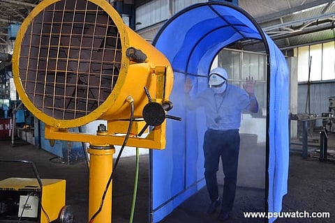 Rourkela: The enterprising collective of Steel Authority of India Limited's (SAIL) Rourkela Steel Plant (RSP) has developed a full-body sanitizer to combat the pandemic Coronavirus (COVID-19). In view of the tough challenges being faced by the steel plant in preventing the highly infectious disease, a new full-body sanitizer dispensing system has been developed at the Shops-Mechanical shop.