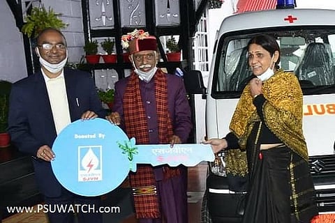 New Delhi: SJVN Limited's Chairman & Managing Director (CMD) Nand Lal Sharma handed over the keys of a well-equipped ambulance to the Governor of Himachal Pradesh Bandaru Dattatreya and the President of the State Red Cross Society in a function organised at Raj Bhawan, Shimla.