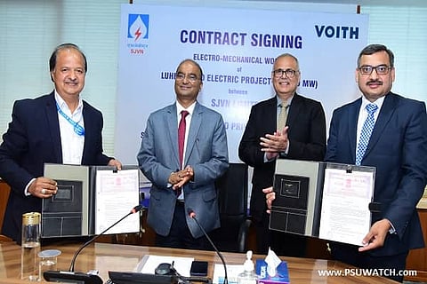 New Delhi: SJVN Limited has entered into a contract agreement for the electro-mechanical works of 210 MW Luhri hydro-electric project (HEP) stage-1 with Voith Hydro (P) Ltd. SJVN Limited's General Manager (ECD) SK Sood and Voith's Vice President Raj Vidyarthi signed the contract agreement on behalf of their respective organisation. SJVN Chairman & Managing Director (CMD) Nand Lal Sharma, Director (Personnel) Geeta Kapur Director, Director (Civil) SP Bansal, Director (Finance) Akhileshwar Singh, Director (Electrical) Sushil Sharma and Voith Hydro (P) Ltd's Managing Director Ravinder Kalra and senior officials of SJVN were present on the occasion.